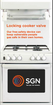 Lockable safety device for existing gas cooker pipework. Carer can easily turn the valve on
